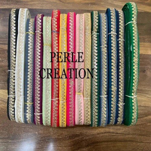 Each lace is made using high-quality threads, zari, sequins, beads, and stones, featuring intricate designs that add a rich and elegant touch to the fabric it's applied to.